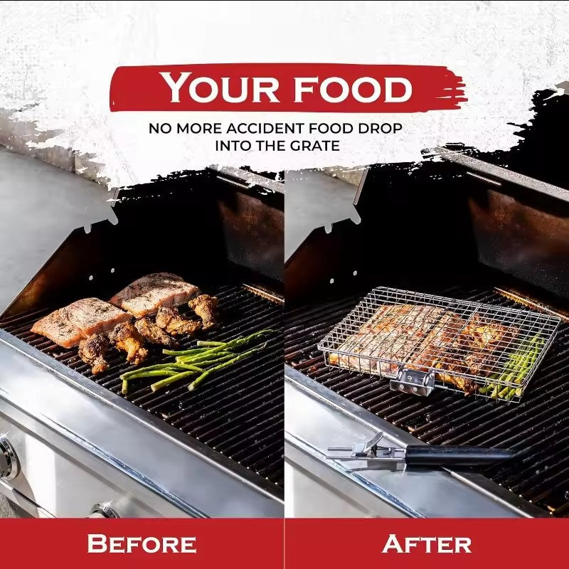 Enjoy perfectly grilled meals anytime, anywhere with this stainless steel barbecue net. Designed for outdoor cooking enthusiasts, it features a durable stainless steel grid that ensures even cooking while keeping your food secure. The heat-resistant wooden handle offers a comfortable grip, making grilling safe and easy.
