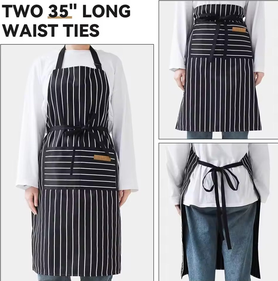 White Black Striped Man Woman Home Restaurant Kitchen Baking Nail Bib Oil Repellent Work Apron 2 Pockets Adjustable Clean Apron
